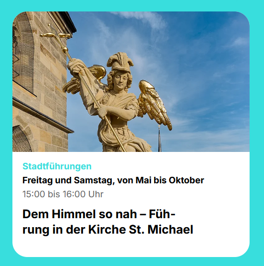 Für 2026 ist die Wiedereröffnung der Kirche St. Michael das große Ereignis. Wir sind froh und stolz, dass wir mit unseren zertifizierten BAMBERG-Gästeführerinnen und -Gästeführern der exklusive Anbieter von Führungen in der Kirche sein dürfen. Mit einer eigenen Schulung samt absolvierter Prüfung sind die rund 50 Kolleginnen und Kollegen bestens vorbereitet. Mit öffentlichen Führungen an Freitagen und Samstagen sowie buchbaren Gruppenführungen von Freitag bis Sonntag und einem Gruppenreiseangebot wollen wir so vielen Menschen wie möglich den Zugang zur Kirche eröffnen und sie mit der Geschichte der Kirche, des Klosters aber auch mit den Erfahrungen der Renovierung vertraut machen. Ein tolles Areal, das nun mit der Kirche und in den Folgejahren auch mit dem Außengelände eine perfekte Möglichkeit zur Entzerrung bietet und wahrlich ein Juwel ist, das mit großartigen Ein- und Ausblicken punkten wird.